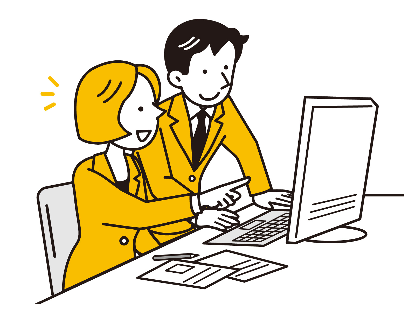 入社初日は、会社全体のオリエンテーションを実施します。会社のミッション、ビジョン、社風、組織文化について説明します。また、福利厚生、就業規則、ITシステムの使い方など、基本的な事務手続きもこの期間に行います。